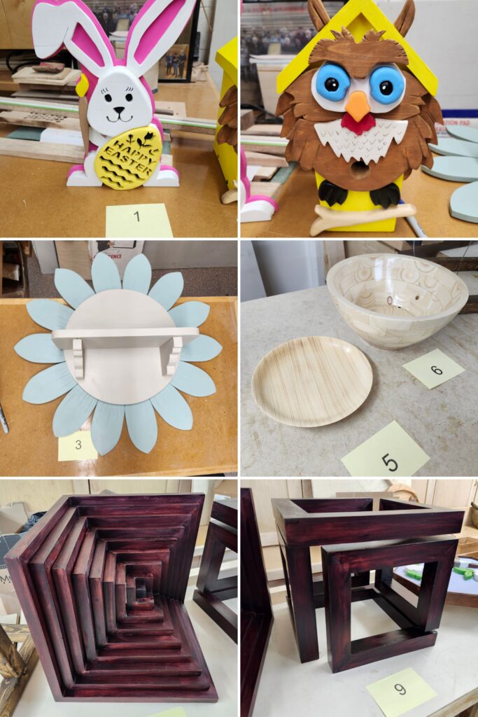 This years 2by4 Challenge was awesome. 14 entries showed the amazing creativity and skill of DWC members… the photos included here do not do these projects justice; those who were able to see and touch the creations will agree. Our creators this year were Leah J, Noel G, Tom L, Chris W, Paul K, Don Mc, Andy B, Gene H, Bernie V, Dale C. The event was organized by Don Mc.
